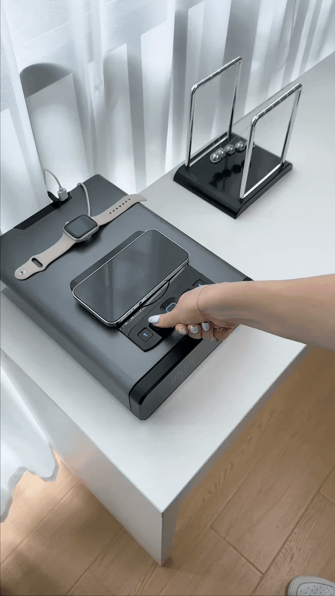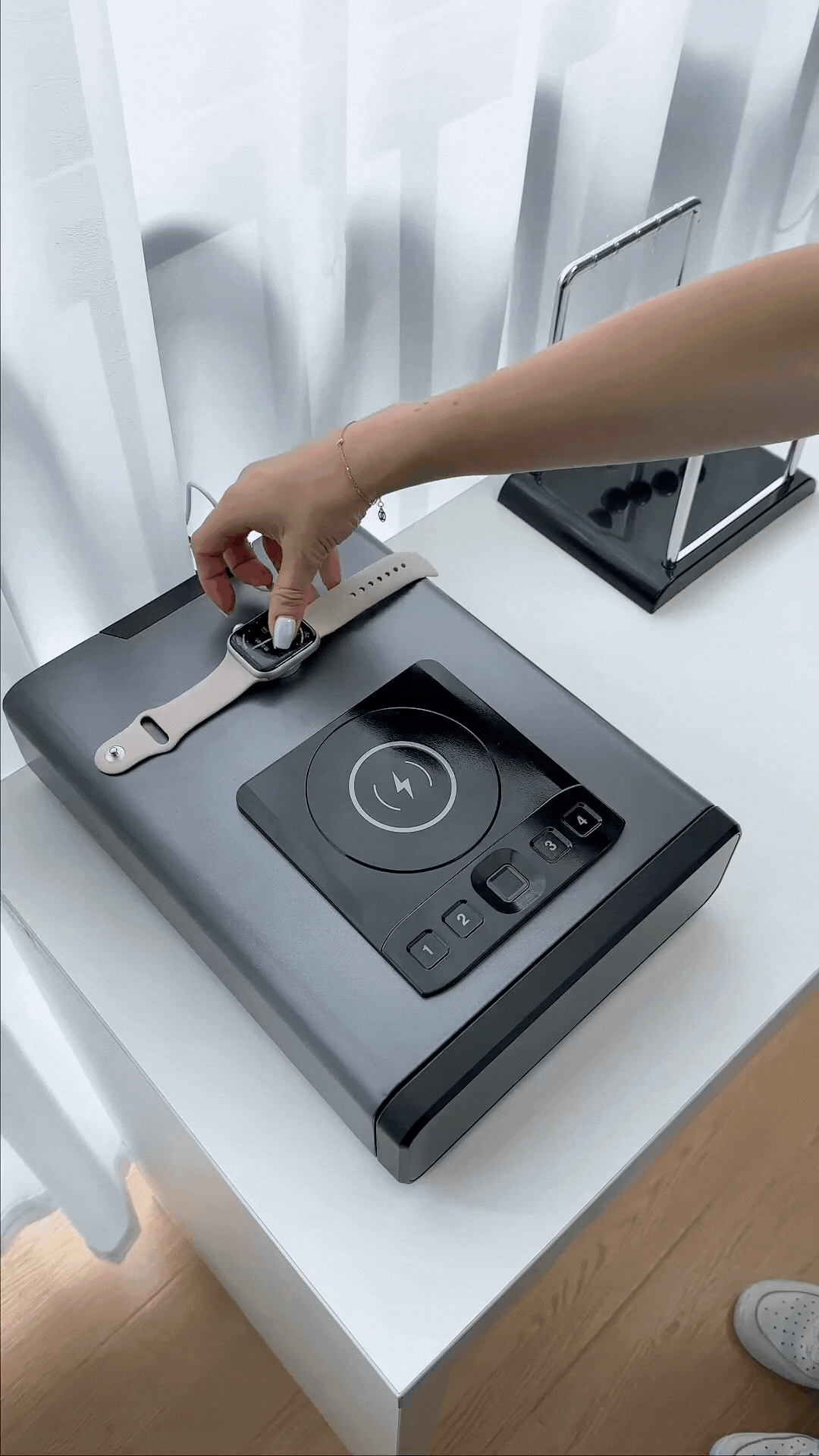 Ideal for bedside tables, closets, wardrobes, or office desks, the Knight Defender seamlessly integrates into your everyday environment, disguised as a stylish digital clock.